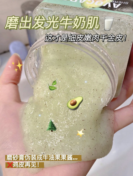美丽蓓菲果酱磨砂膏是什么神仙牛油果冰沙。特别好闻的果子味道,看久了不知道的以为是果酱!这款是牛油果的,它可以改善干燥鸡皮肤,每次用后肌肤都滑滑的嫩嫩的。