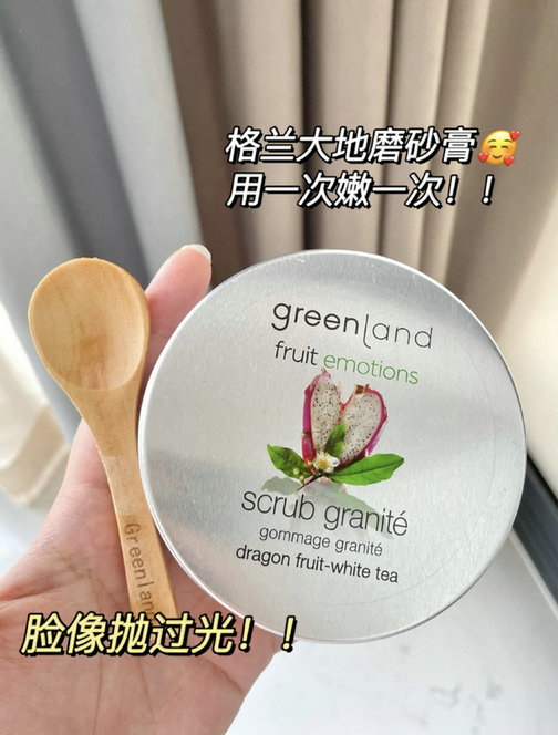 绵绵的果酱质地,花果香的味道超好闻,其实是荷兰的一个小众品牌格兰大地磨砂膏啦~蛮少见到这种水感啫喱的磨砂膏,抹开有一种爆水珠的感觉,而且对我这种干敏皮来说!这个颗粒猴猴猴猴细腻!