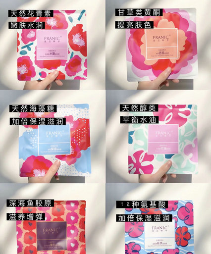 多种功效真的爽歪歪,可满足人的不同需求,平时我会根据自己的皮肤状况去选择,比如自己出油的多就选控油的来平衡水油,熬夜通宵了就选去黄提亮之类的,重要场合上妆前也会给自己敷个补水保湿后续上妆更服帖!出门旅行也方便带一盒就够了!毕竟女生一出门啥都想带不做选择的)