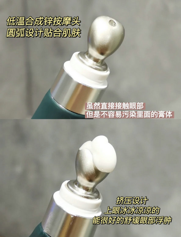 自带的按摩头用起来超方便,很贴合我们的眼部肌肤,比用手按摩还要好吸收呢,上眼冰冰凉凉的好舒服搭配着眼霜一起按按眼睛,一下变得好放松,按完能明显感觉到眼睛不在浮肿啦~