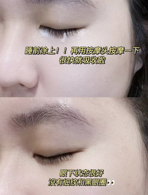 这支眼霜越用眼下的皮肤越细腻,眼周像是开了磨皮柔焦一样,熬夜过后那明显的黑眼圈,慢慢的变淡了许多~早上起床眼睛不会再浮肿无神,后续上妆都不在卡纹起皮噜~
