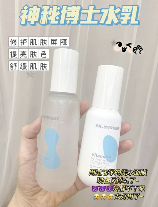 神秘博士(myster doctor)济南马鲁拉生物科技有限公司旗下护肤品牌。由中外多国医学博士联合创立,致力于帮助问题肌肤和敏感肌肤全方位解决问题。凭借着高性价比已经获得了不少消费者的关注和喜爱,其中,神秘博士视黄醇水乳就是一款热销产品,接下来我们一起看看使用效果怎么样?