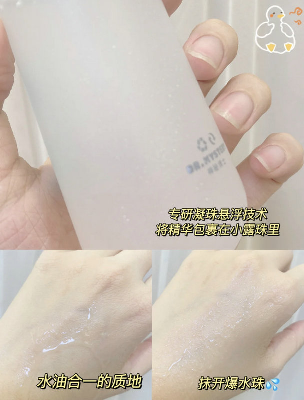 乳液是水包油包水技术一抹爆水珠好舒缓~感觉它这个好用心啊~干皮用保湿滋润油皮用清爽不粘腻,偷偷告诉你可以顺带脖子也抹一下,神秘博士水乳精华淡化细纹很在行,有惊喜哦!
