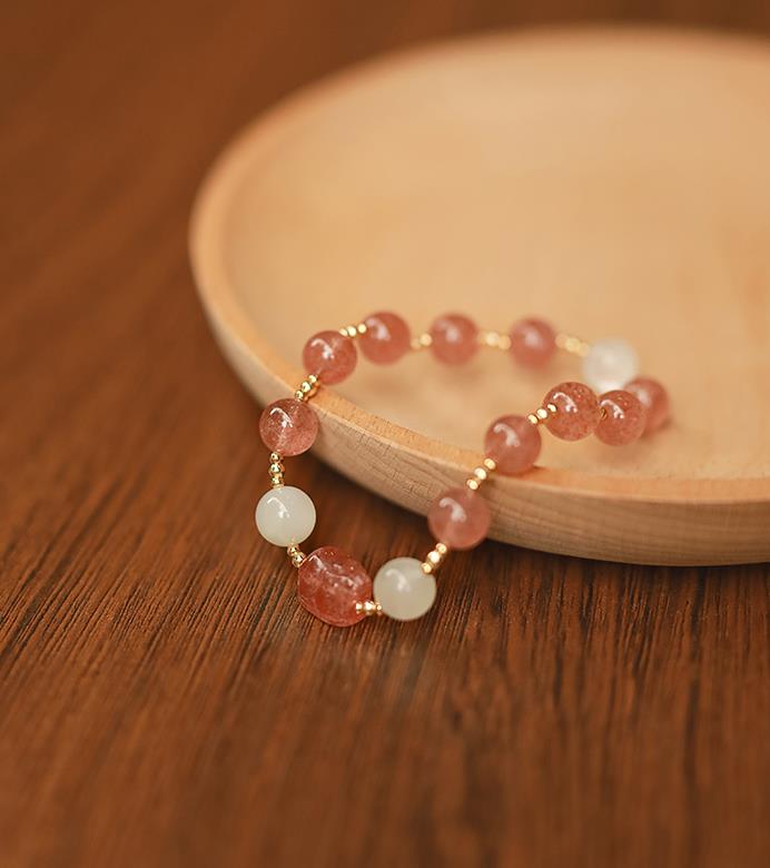 草莓晶非常适合女性佩戴,它既有着少女般的小清新小可爱,又有着成熟女人的迷人诱惑力,而且它还能对应人体的血液循环系统,能够提升我们的气色,对于女性来说这点也是非常重要的。
