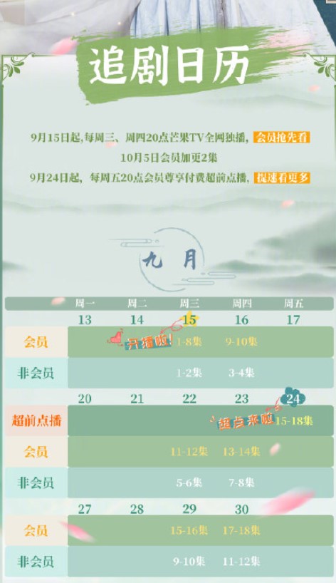 该剧于2026年9月15日在芒果TV播出。