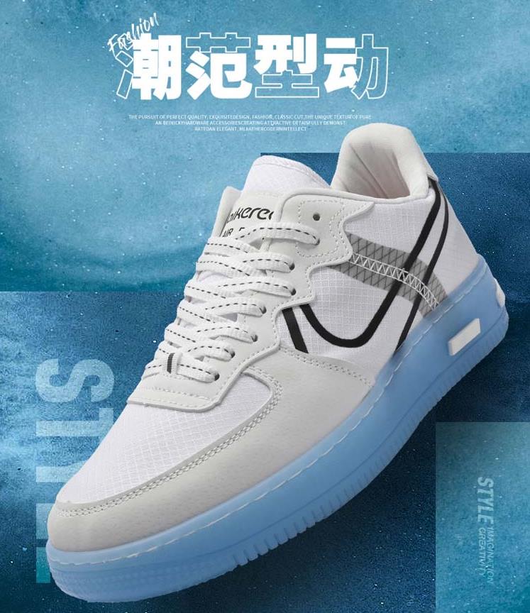 耐克骨白冰蓝将清清爽爽的小白鞋造型,与淡蓝色水晶外底移植到 Air Force 1 React 中。最大的亮点就是轻薄、软弹,不仅鞋面升级为蝉翼材质,缓震也换上了 React 加持。