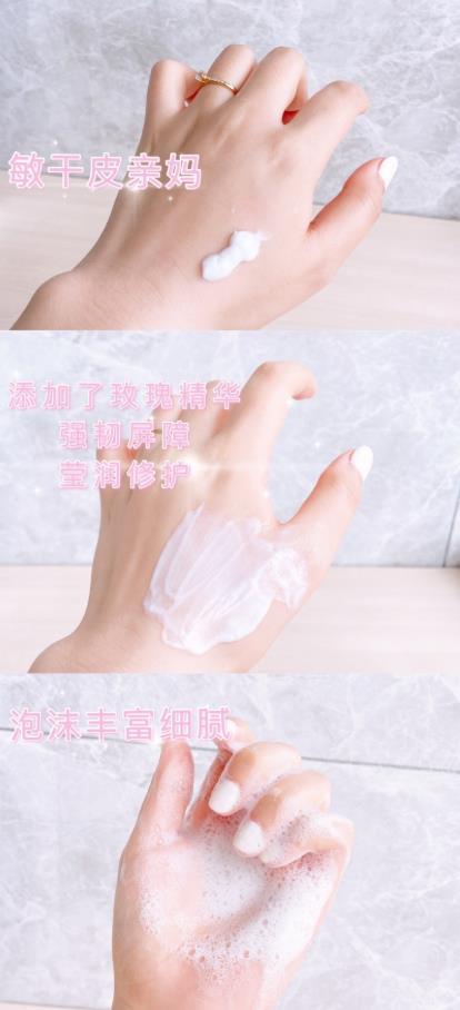 这款PMPM玫瑰洁面乳就很不错,氨基酸成分可以修护敏感肌的成分,温和亲肤,清洁力还有很到位,敏肌越用越强韧。