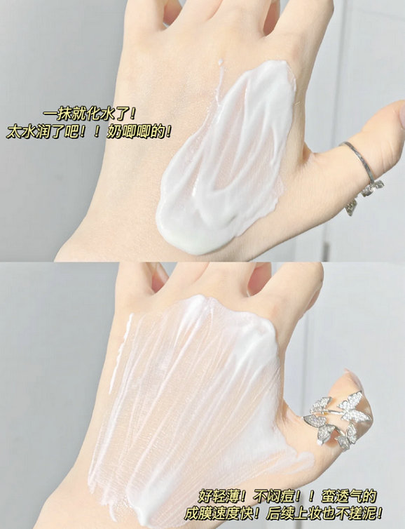 悦芙媞雪糕防晒霜,它上脸肤感好棒!牛奶乳液质地!一抹开就化水了!好水润呐!润但是不油!!不粘腻!成膜快!出门不用等了!成膜后蛮清爽的!蛮轻薄的不闷皮肤不闷痘!皮肤没有负担。