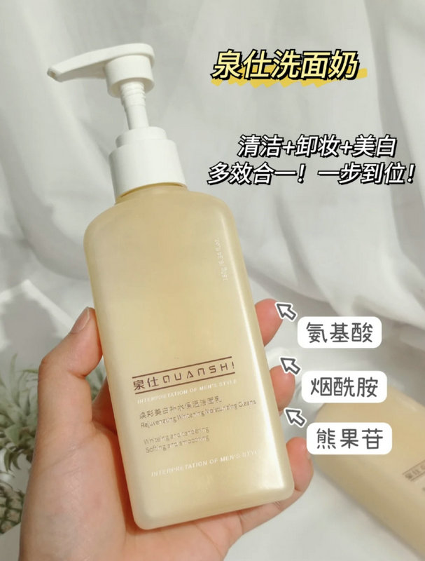 泉仕洗面奶是很不错的一款男女通用洗面奶,可以深层清洁、美白淡印、平衡水油、补水保湿。泡沫很细腻,洗完脸上很清爽很干净呢,也比较滋润,不会觉得皮肤很紧很干。接下来我们详细的看一下泉仕洗面奶使用效果怎样?