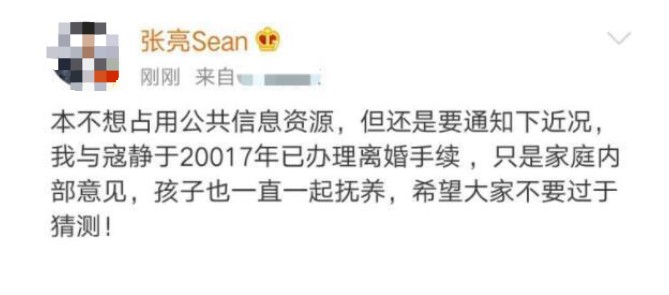 此前张亮在2019年突然发文,称自己和寇静早在2017年就已经办理了离婚手续的事情,同时表示这是家庭内部意见,希望大家不要过度猜测。然而张亮平白无故透露自己的婚姻状况,却加重了网友们的猜测,尤其是他宣布离婚之后,却经常被拍到和妻子一起带着孩子外出、回家等等。