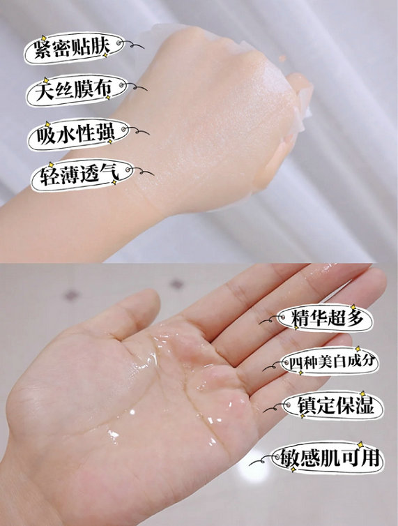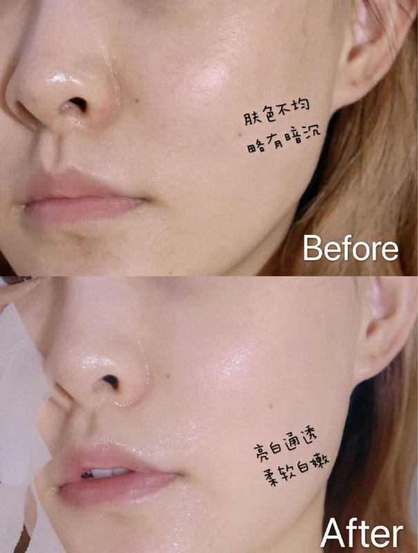 敷完当时就感觉到皮肤水当当的~后来差不多大半个月用完了一盒10片真的白了好多最主要的不仅是白皮肤还通透有光泽感~还很嫩~妻颜看着状杰也挺好~真实落泪~赶紧告诉小姐妹去了~