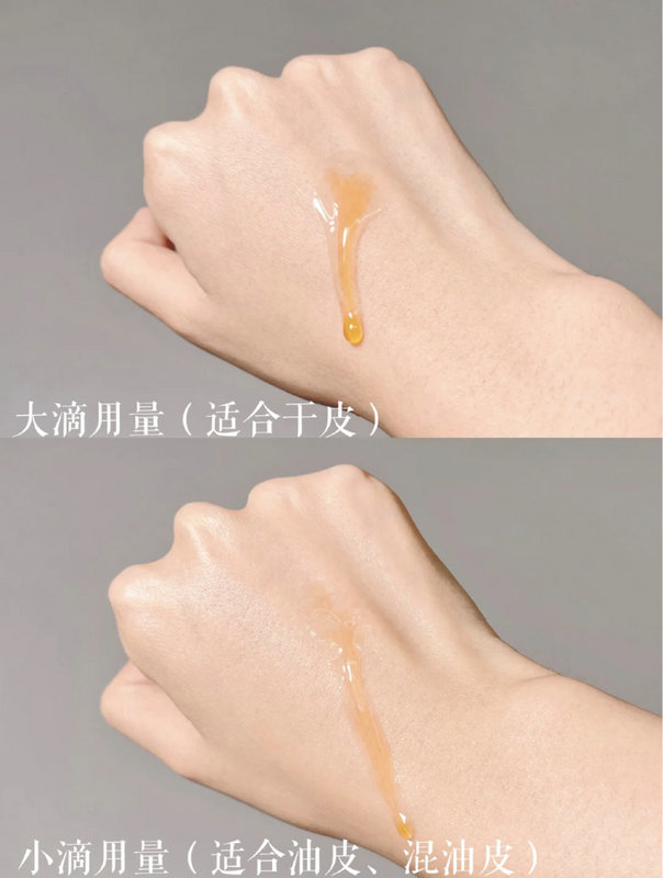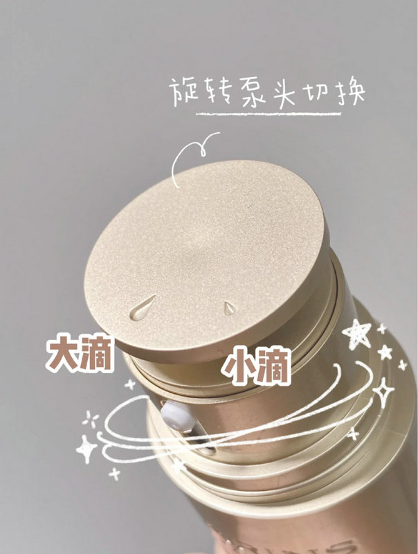 娇韵诗精华还是很讲究的,一个按压泵上面有两个水滴的标准。左边的水滴大一点是适合干性皮肤,右边的水滴小一点适合混合性皮肤和油性皮肤。大家不要按错了哦。根据自己肤质来哦。