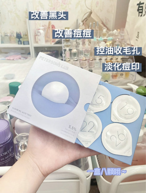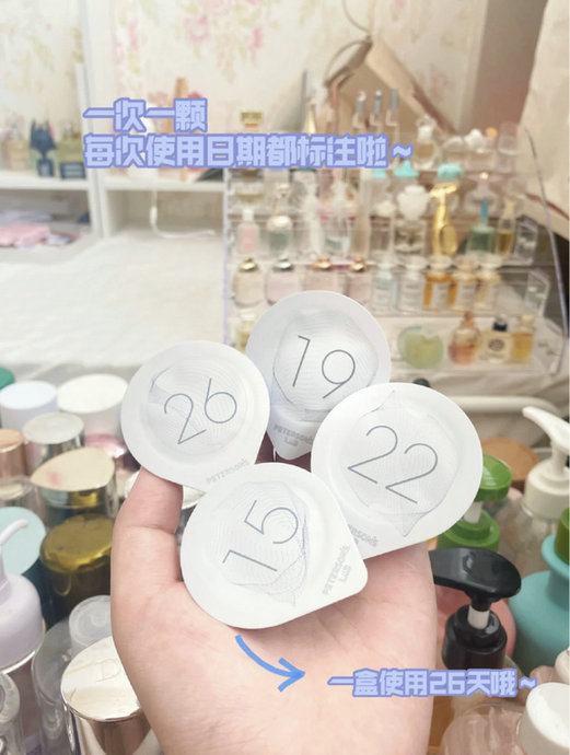 敲黑板!再来讲讲不翻车的新手刷酸步骤面部清洁后,用这个小果冻,它是一盒8颗,每颗都带着数字17我干皮间隔的时间会久一些。痘肌的话2-3天来一颗。