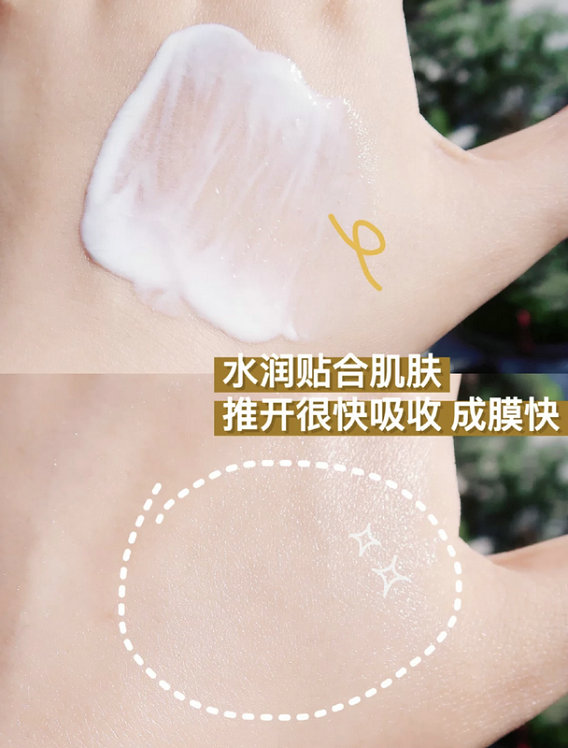 质地是比较稀薄的乳白色液体,流动性比较好,不油腻,很容易涂抹开,淡淡的香味,刚开始涂抹时有湿润感,很快就变成磨砂质感,很适合皮肤偏油的我。也做了防水实验,效果不错。