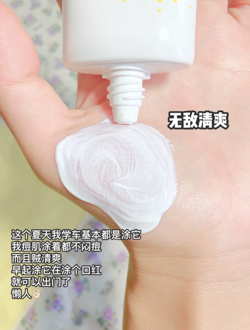 玥之秘美白防晒霜成膜速度超级快,一下子就被吸收了,肤感超级清爽~瓶口设计方便卫生,单手就能操作,不用担心扭开盖子随手一放之后就找不到。