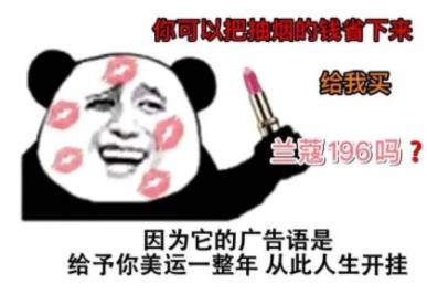 兰蔻196的宣传广告语是“给予你美运一整年,从此人生开挂。”意思是如果你买了兰蔻196的话,你的人生就会像开了挂的一样,越来越幸运。这句广告语的设计不仅具有创意,还切中当代用户的内心,具有很强的互动性,网上甚至还出现了相关的表清包。
