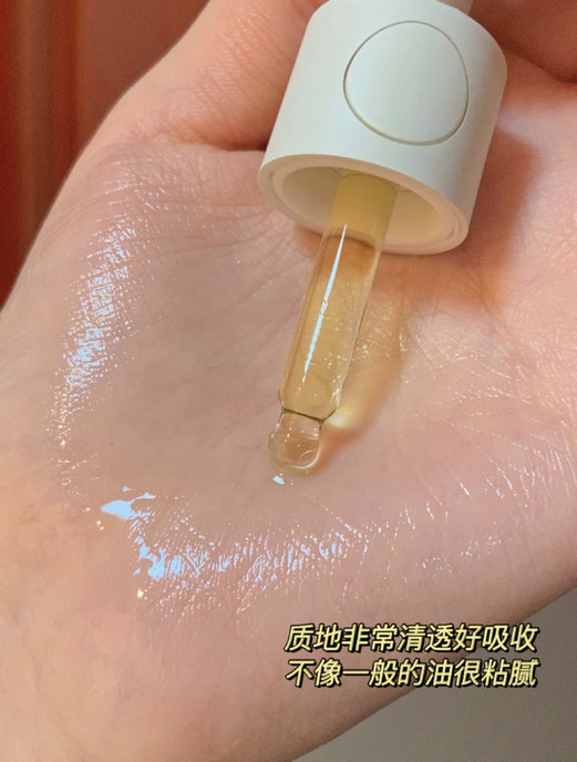阿芙精华油包装还挺有质感的,盖子上有个home键一样的开关,一按就开了,本身滴管设计也还挺卫生挺方便的。味道闻着很天然,质地和我想象中不太一样,油感并不算重,流动性很强,抹开不粘腻。