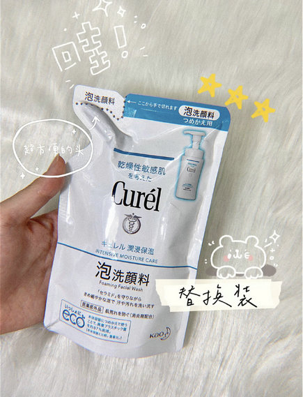 想入手一款早上使用的温和补水保湿洗面奶,就续之前买珂润乳液时一起买了他们家洗面奶,我觉得很好用,已经用空了一瓶就买了替换装,特别环保又方便。他们家还有款是绿色瓶装,主要是控油保湿的。集美们可以根据自己的需求去选择哈!