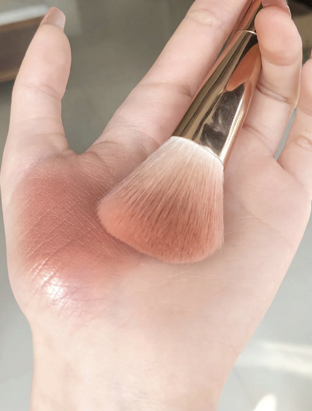 刷毛软芙芙,腮红盘压得很实,取粉不飞粉,布灵布灵的,低调的珠光,不会很闪。这个配色蛮好看的,上脸自然,敲适合黄皮。一般我都是从太阳穴下方斜打至颧骨偏下方的位置,鼻头一笔带过,很温油的一个腮红盘,爱辽!