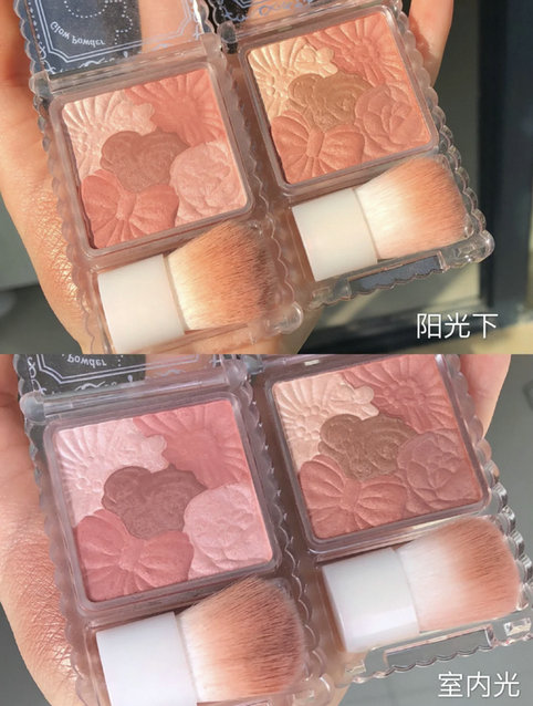 涂上去嫩嫩的,我每天除了当腮红还用来当眼影,最浅色还可以当高光,一盘三用还节省时间,特别适合我这种冷白皮,喜欢。