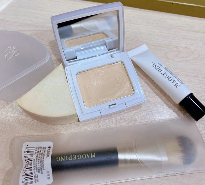 用三角粉扑的弧面去上妆而不是用尖头,为了让妆容更自然试试在粉底前上粉膏会比粉底后更自然。黑眼圈跟我一样不是很严重的,可以使试试。如果黑眼圈比较深建议用调色遮瑕膏+高光粉膏来搭配遮盖效果会更好一些!