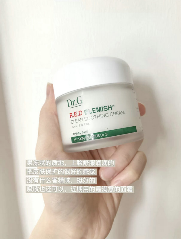 使用完皮肤滑溜溜的 之前买过Dr.G精华霜小样,就已经非常喜欢了,自己是敏感肌,使用其他水乳经常会爆痘,使用这款面霜真的有改善很多,推荐一下!