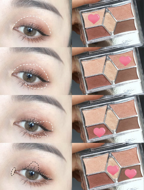 Canmake是日本的人气化妆品牌。CANMAKE创立于1985年。canmake眼影是五个色盘。每个颜色分别涂抹在手臂上的试色,都加了blingbling的亮粉。眼妆画完之后,放大双眼的效果特别明显,眼睛也显得非常有神。