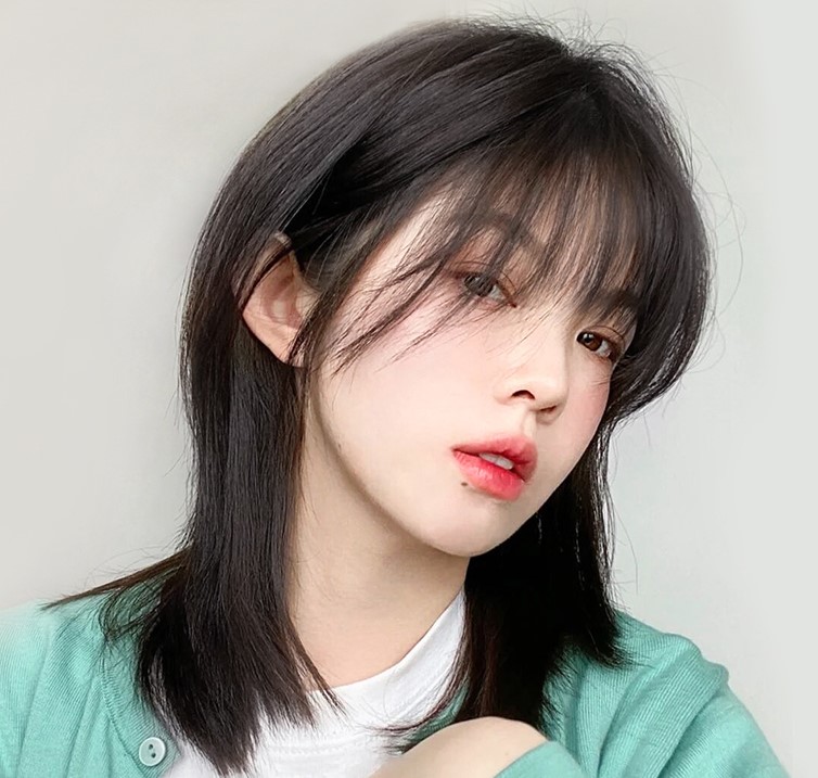 可人小脸蛋无论什么发型都百搭,锁骨发也不例外!这是一款锁骨直发发型,自然黑发让造型看起来很清纯,与可人小脸搭配很有无辜感。