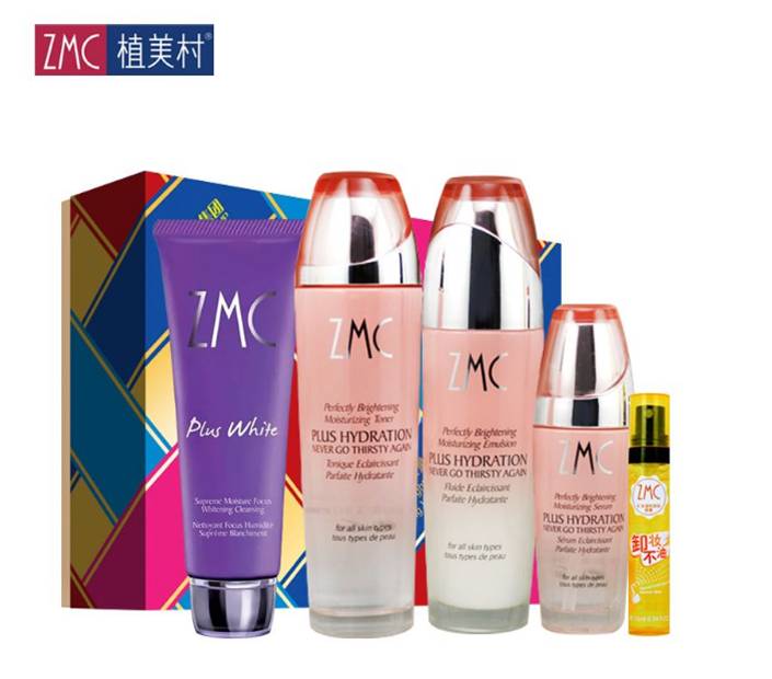 4.植美村ZMC润透沁颜护肤套装 (洁面乳100g+柔肤水160ml+保湿乳130ml+补水霜50g)