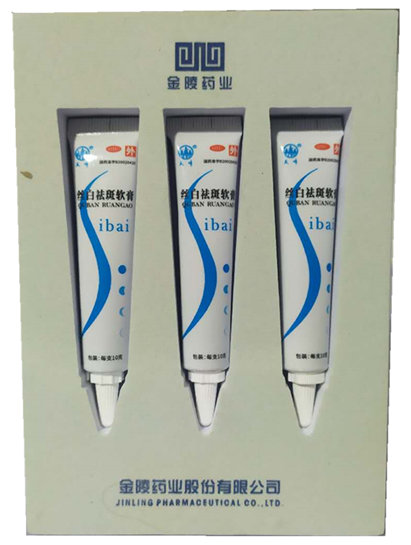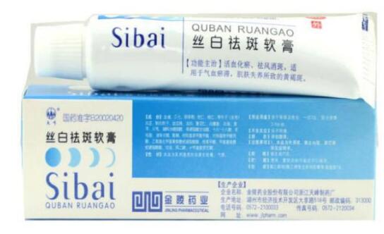 丝白祛斑软膏是一款组方复杂、功效显著的药品,主要成分包括有珍珠粉、杏仁、血竭、三七、白芷、白僵蚕、白蔹、制白附子、丝瓜络、桃仁、牵牛子(去壳)、当归、薏苡仁、黄芩、川芎等等。丝白祛斑软膏具有活血化瘀、祛风消斑的显著功效。方中当归、桃仁、血竭、三七等为主药,其中当归补血活血、调经止痛,桃仁活血化瘀、润肠通便,三七起化瘀止血、活血定痛之用,血竭则行止血生肌之效。