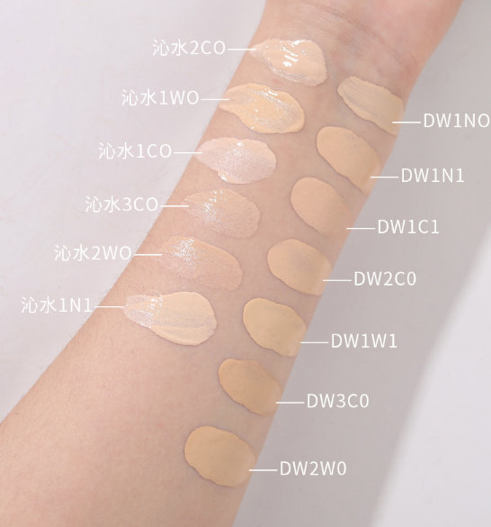 不同肌肤对粉底液的适应强度不同,痘痘肌可优先选择暖色偏黄粉底液打底遮瑕,将粗大毛孔及细微瑕疵,全部隐藏保持整日完美妆容。脸部有红血丝可优先选择色号深一点的粉底液进行适当遮瑕,同时少量涂抹避免肌肤二次伤害。肤色暗沉无光想要提升一个亮度可选择2c0色号粉底液增白提亮。