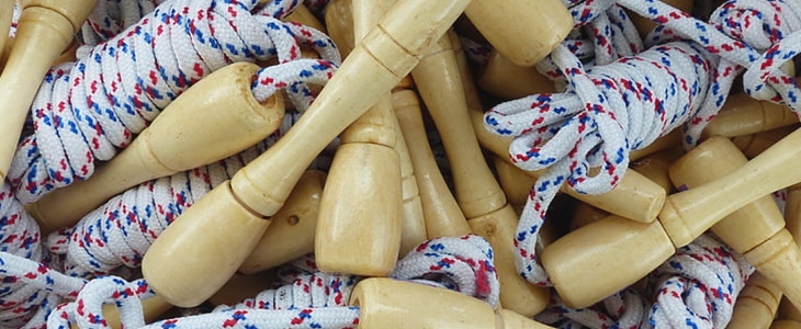 4、跳绳的时候双手分别握住绳子两端,两臂屈肘时可以将小臂抬平,绳子拉直到合适的长度。