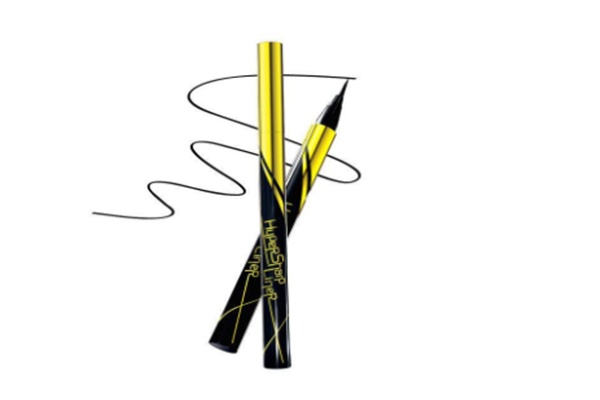 二、好用的几款眼线笔 1、美宝莲极细易画眼线液 这支眼线笔是比较水感的一款,含水量较高,因此十分顺滑,而且笔尖很细,因此很好上色,也不用手重。是属于较浓黑的类型,画出来会有一点水墨的感觉,冲水不会掉,是防水的一款,而且持妆度还挺好。