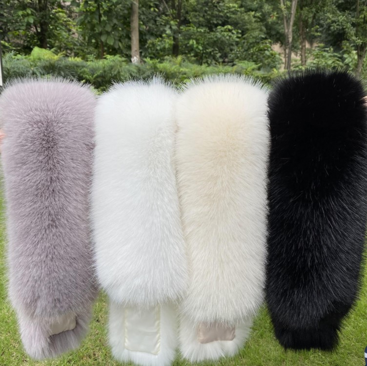 2. 狐狸毛的种类就比较多,现在市面比较多的一般都是蓝狐毛、银狐毛、蓝狐皮毛颜色从深灰到浅灰过度,毛色中还会带有白色,灰色,蓝色,蓝狐皮毛细长,光泽好,属于一种比较高档的狐狸毛。