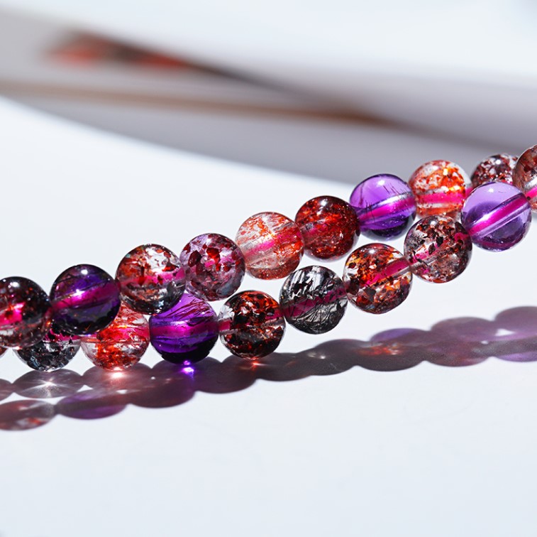 金色:含有金红石,而且多偏金黄色,俗称「钛金发丝」,像是洋人的金发,这种发晶最受到喜爱。功能对应人体太阳神经丛,主逻辑、理智、完美。