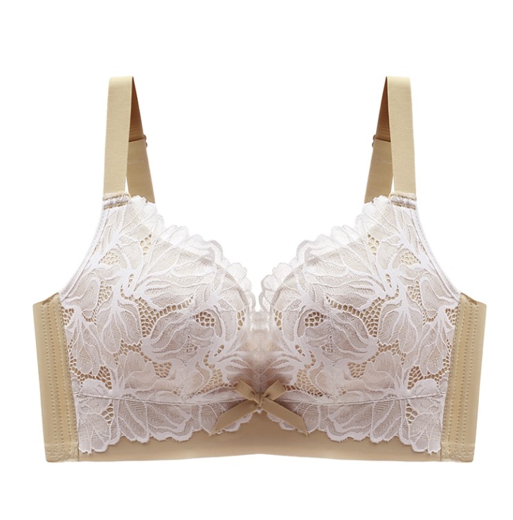 一、上半身向前倾斜四十五度,手臂穿过肩带,挂上双肩,用双手托住罩杯下方。