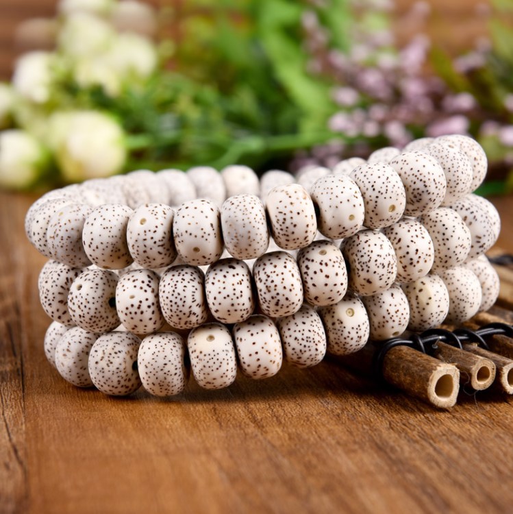白色菩提珠若是因为长时间不清洗,导致污垢的沉积而发黄,使用干刷经常性的清洗即可。若是高温导致内部水分流失,造成内部发黄,则需要经常性的进行擦拭补充水分。若是选用籽料颜色导致发黄,等其表面被氧化即可。