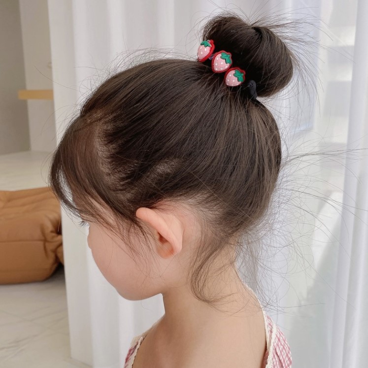 1.简单的丸子头,衬托的孩子天真可爱,扎起来也很简单,只需在头顶扎一个马尾然后卷起来就可以了,当然也可以选择合适的发饰来搭配。