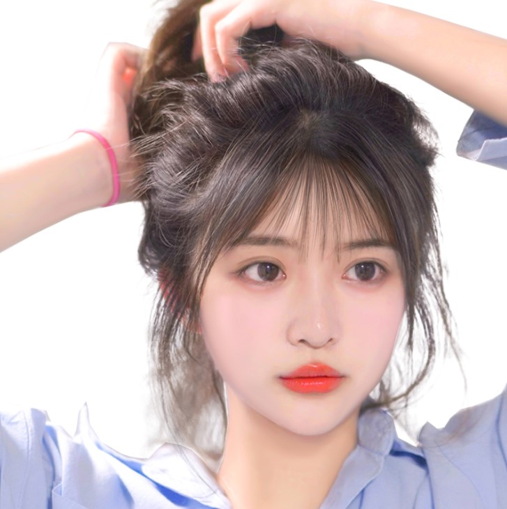 如果是空气的齐刘海的话,我们在拍证件照之前可以将刘海做一个内扣的处理就可以了,齐刘海如果是比较多的话,我们可以做成中分或者三七分的处理方式。