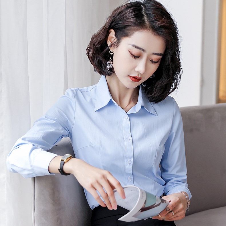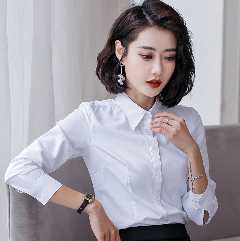 3、衬衫以白色为主,一定要能和套装颜色相匹配,丝绸面料最佳,但干洗麻烦,如果使用纯棉面料,一定要保证熨烫整齐,不要有褶皱。