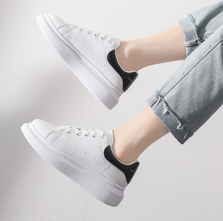 麦昆鞋作为一个鞋牌,自然拥有不同的配色,其中白鞋黑尾成为了经典的配色,小白鞋的底层加厚了底部,穿上就会带来一定的增高效果,由于增高的比例非常合适,在一定程度上会让人感觉自己的腿部被拉长,修长纤细的风格让人钟爱有加;脚腕口部的设计比较出众,不仅十分小巧精致,也会让腿看起来细长有致。
