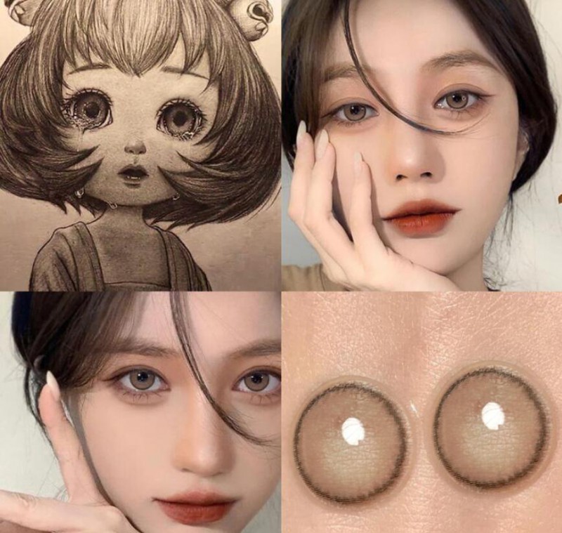 1、棕色美瞳:搭配大地色,紫色,蓝色,绿色眼影。