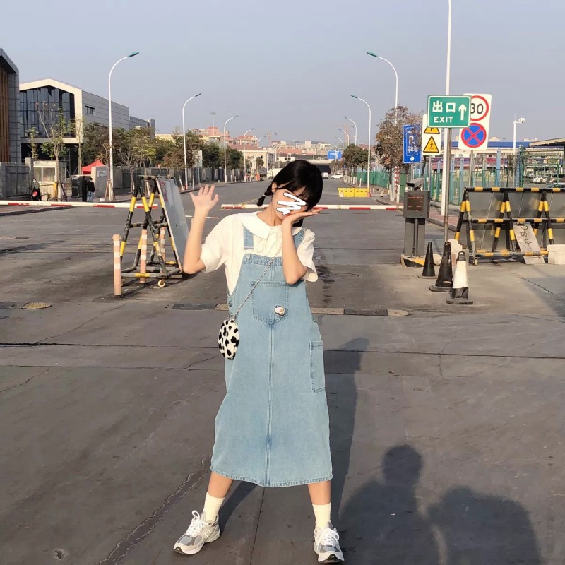 背带连衣裙搭配小白鞋