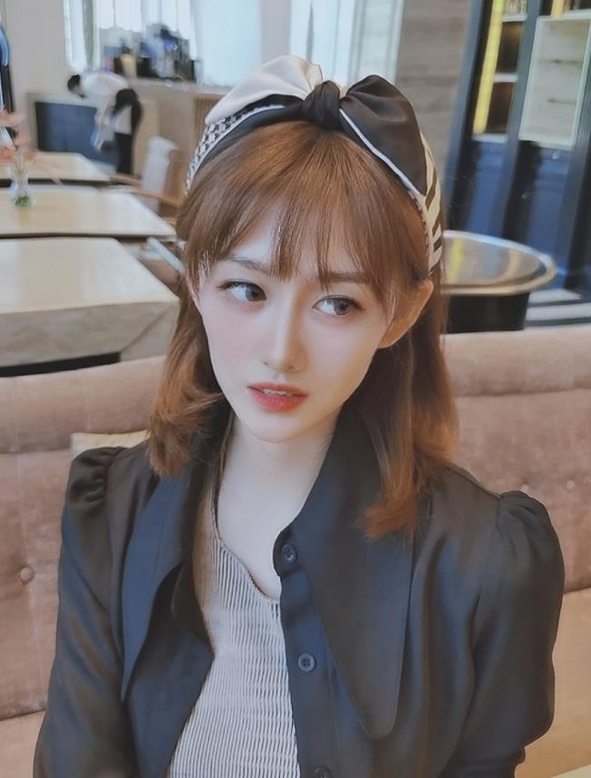 二、眉下一公分刘海 在生活中眉下一公分刘海适合大多数脸型,金多美就很偏爱这款发型,带点微卷的头发,发尾渐变染色处理,大面积微卷内扣的刘海,不会显得呆板,给人一种可爱俏皮的气质。空气感眉下刘海给人软萌乖巧的感觉,微微遮住眉毛,将视觉焦点集中到了眼眉部分,突出大眼睛的优势,惹人怜爱。刘海在眉毛下方一公分处,微微卷曲刚好遮住眉毛,扎个马尾或者将头发拢到耳后,凸显了饱满的苹果肌,清爽甜度同时在线。