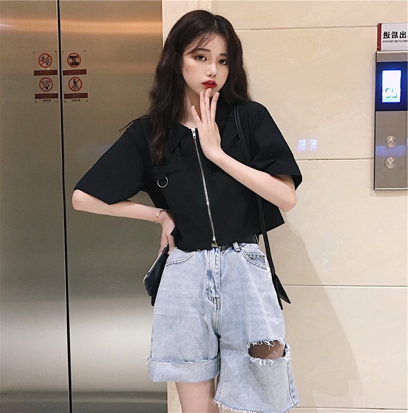嫌黑色太沉闷?各位嗒友们,来点新奇时髦的LOOK吧!印花牛仔短裤搭配黑色衬衫还不够,把衬衫打个结这样的90年代复古穿法今年又火了,再正式的衬衫也能穿出不良少女的风格。