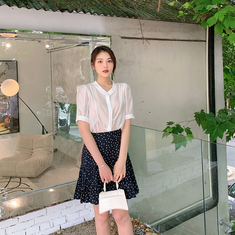 小清新feel的淡蓝色衬衫作为内搭,是今年很流行的穿法,叠穿清爽的T恤,造型就很青春活力的样子,非常减龄哦,下身选择白色的短裙,造型就轻松搞定了,这么穿美炸了!