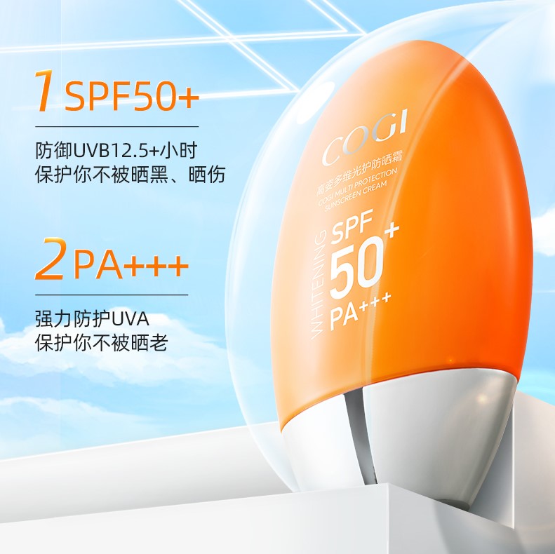 高姿防晒喷雾的防晒指数SPA50+、PA+++,能够长达12.5小时抵御UVA/UVB,防止肌肤晒伤、晒老。