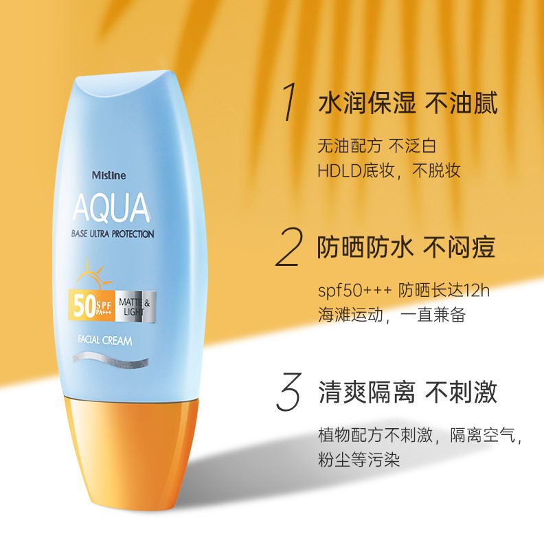 5、通过质地分辨真假:正品的mistine小黄帽防晒霜是乳白色的,质地特别的水润细腻服帖,流动性比较弱。