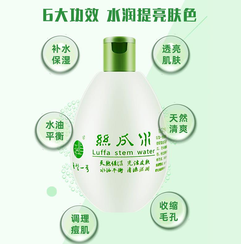 保湿美白:丝瓜水含有大量天然保湿因子,不黏腻的保湿成分可有效的维持角质层正常含水量,从而减慢脱水与延长水合作用,能补充肌肤必要的水分。经常使用丝瓜水可很好的保持肌肤水嫩、细腻,同时还能起到保湿美白、舒缓紧绷干燥肌肤的功效。