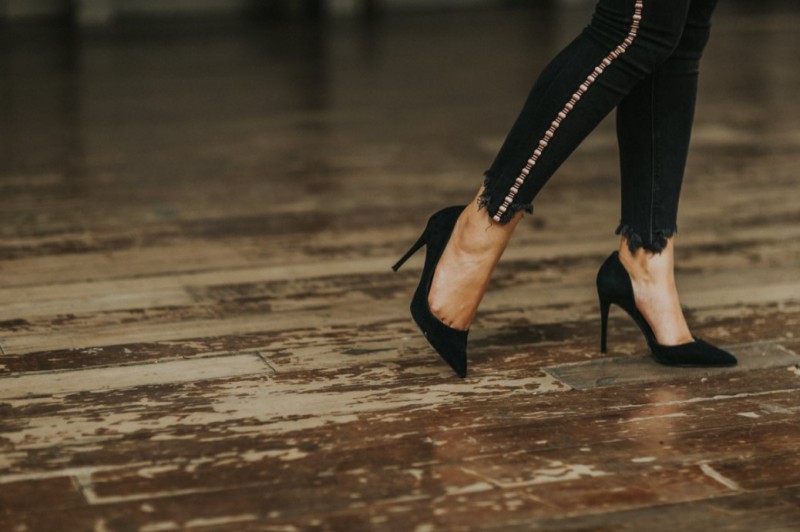 3、鞋子的款式选择。如果是夏天穿,最好不要选择完全露脚趾头的京鞋,即便是高跟的搭配起来也不会很好看,可选择鱼高眼鞋。高跟鞋的高度,不能太过,一般高度在5-8厘米就比较合适了。